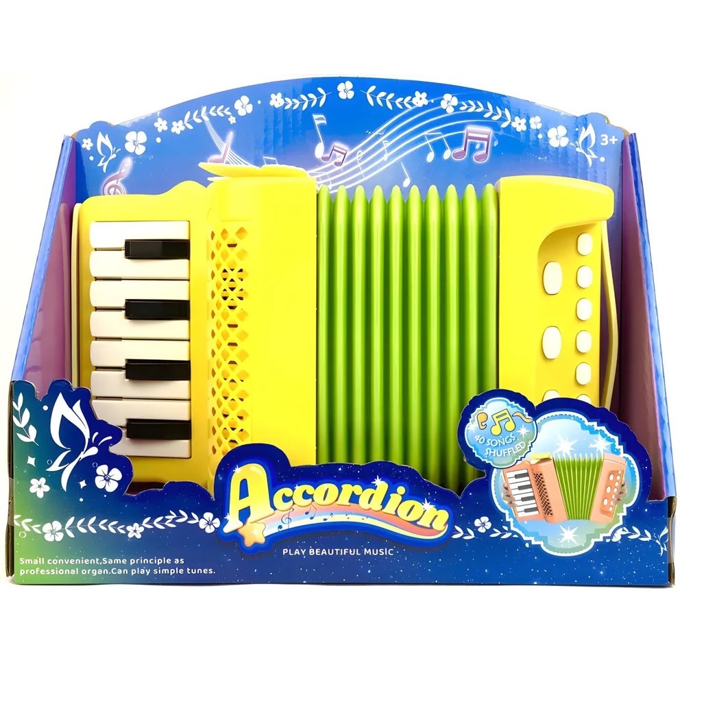 Acest acordeon pentru copii vine include 8 clape, 10 butoane si pana la 40 de melodii incorporate care il vor impresiona si distra pe micul muzician.