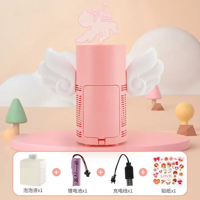 Baterie reincarcabila alimentata prin USB, produsul este dotat cu iluminare, cablu de incarcare si buton de pornire/oprire. Echipat cu compartiment pentru solutia de baloane si buton pentru reglarea vitezei de eliberare a baloanelor.
