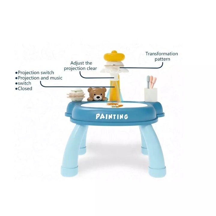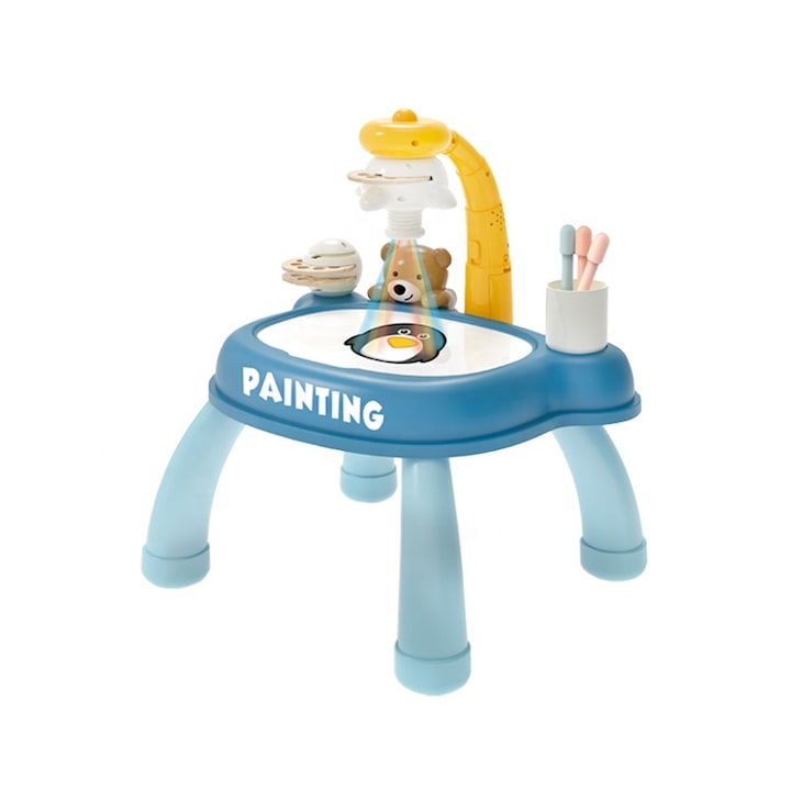 Masuta albastra pentru desen Rabbit, cu proiector si accesorii
