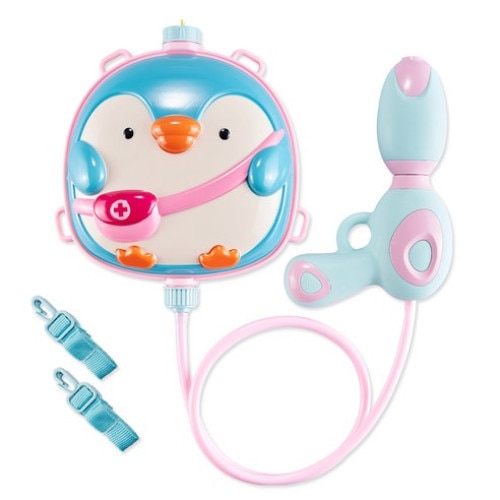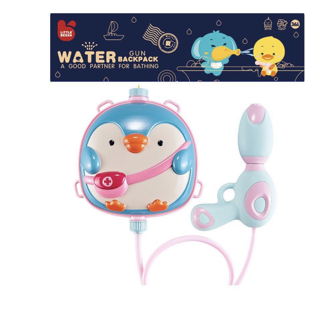 Pistol cu apa cu rezervor tip rucsac, 1000 ml, bretele ajustabile, Pinguin Roz, 3 ani+