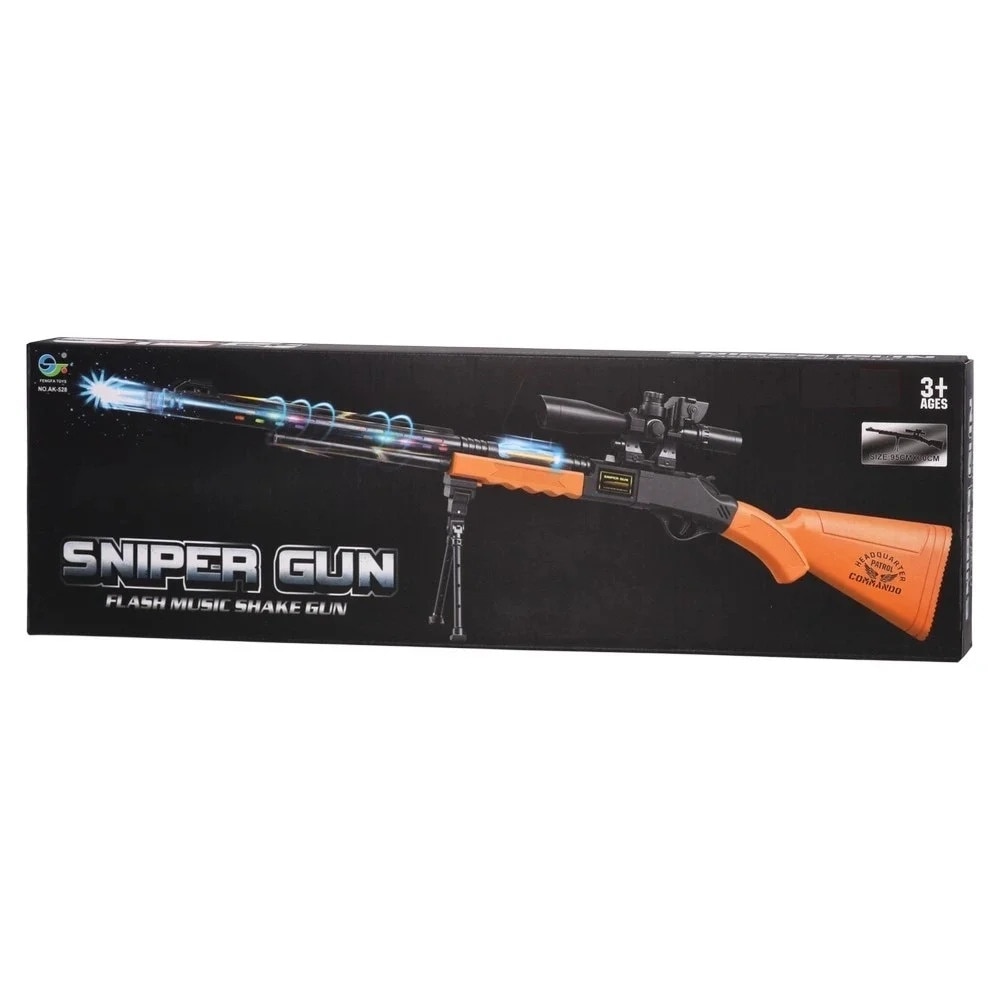 Pusca de jucarie, cu luneta, sunete si lumini, pentru copii 3 ani+, plastic, 95x30cm, negru-portocaliu