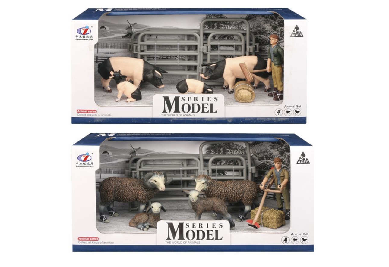 Set de figurine tematice fermă, ideal pentru copii peste 3 ani. Pachetul include animale domestice (porci cu purcei sau oi cu miei), fermier și accesorii specifice precum gard, baloți de paie și unelte. Figurinele sunt realizate din plastic rezistent, cu detalii realiste, potrivite pentru jocuri de rol și dezvoltarea imaginației.