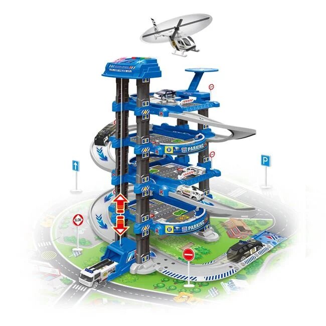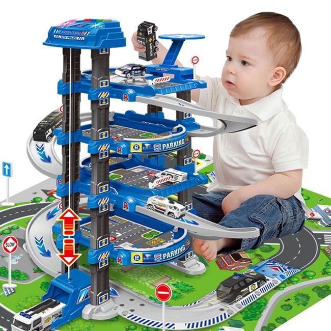 Transforma joaca intr-o misiune captivanta cu acest garaj de politie cu 3 nivele, echipat pentru interventii rapide! Setul include un covor detaliat de 78×58 cm cu pista pentru actiune realista, semne de circulatie, si un avion impresionant de 25x27x8,5 cm, cu cabina care se deschide pentru a incarca vehiculele.Garajul insusi ofera efecte spectaculoase de lumina si sunete de politie care vor incanta micii aventurieri. Functioneaza cu 3 baterii AA (nu sunt incluse), pregatit sa aduca actiune si distractie maxima!
