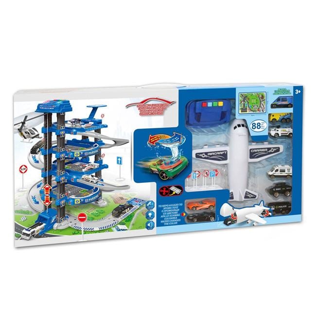 Garaj de Politie cu 3 Nivele, Avion, Vehicule, Sunete si Lumini – 88 Piese